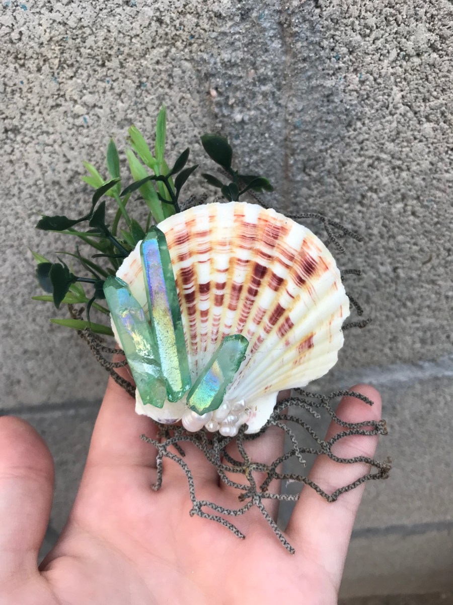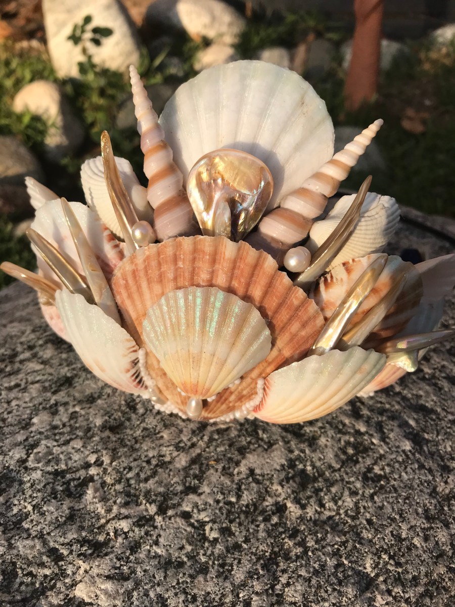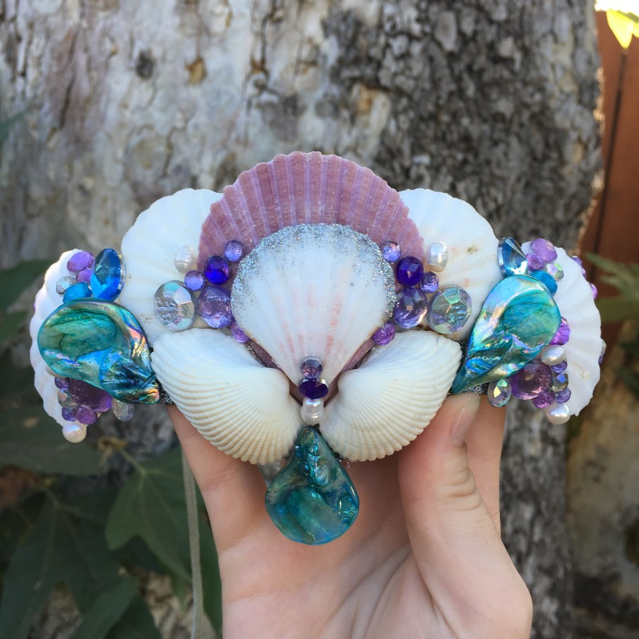 Mermaid crowns are meant to reflect the beauty of the open water. Their natural shells mixed with biodegradable glitter, pearls, and rhinestones truly encapsulate the childlike wonder that is the ocean. Not only do these crowns represent the ocean but they have the ability to become one with the ocean as they are waterproof. These crowns will transform you into mermaid royalty underwater and on land. There are currently more crowns in the works.